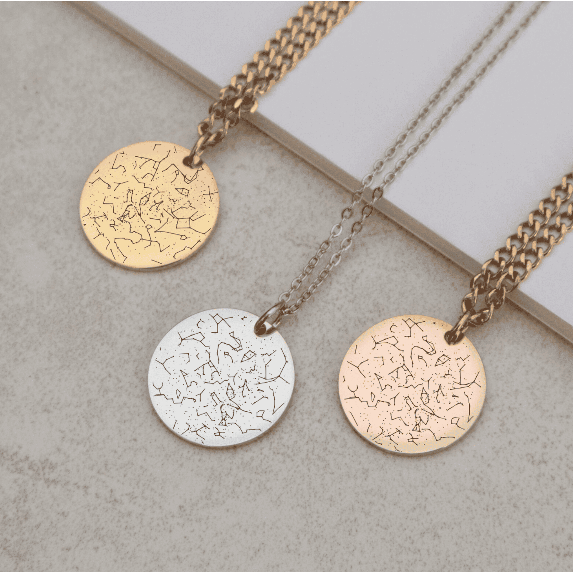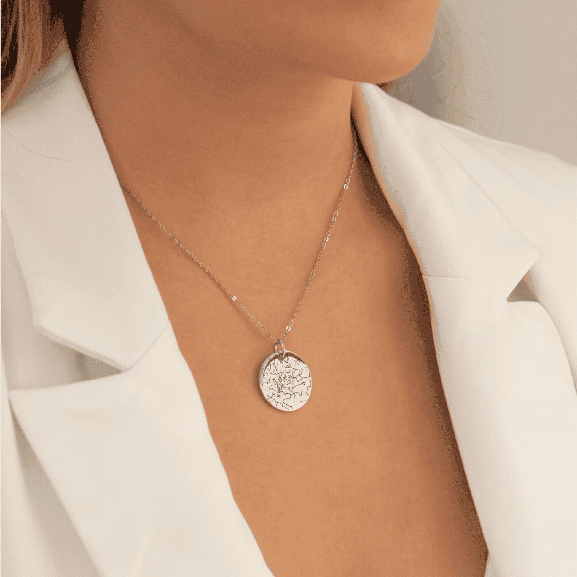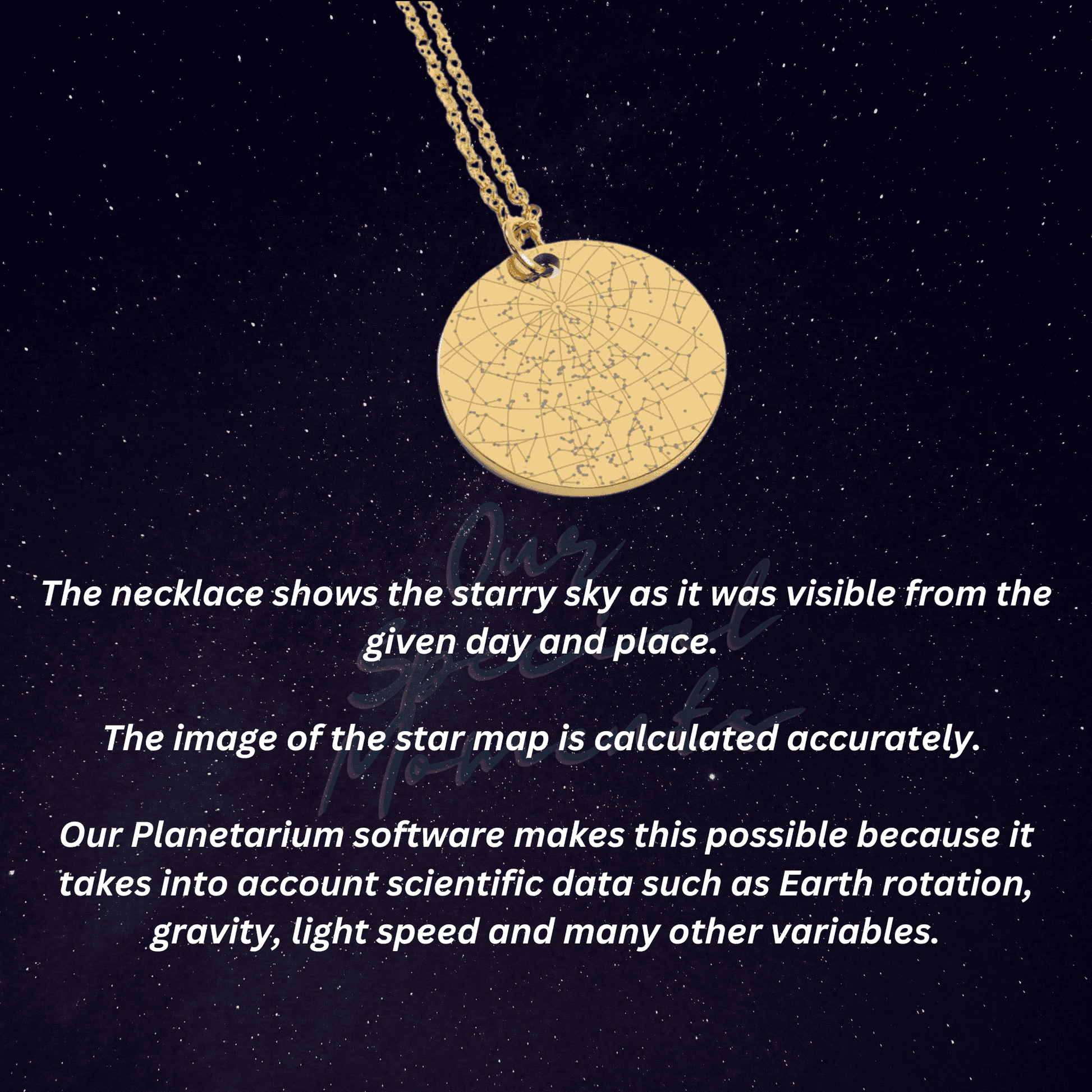 Simply add a date and a place, and our designers will customize a star map that shows exactly how the sky was looking on that specific day, from that specific place. Optionally, you can choose to give the necklace an even more personal touch by adding a custom message or coordinates on the back. This necklace also makes the perfect gift for birthdays.