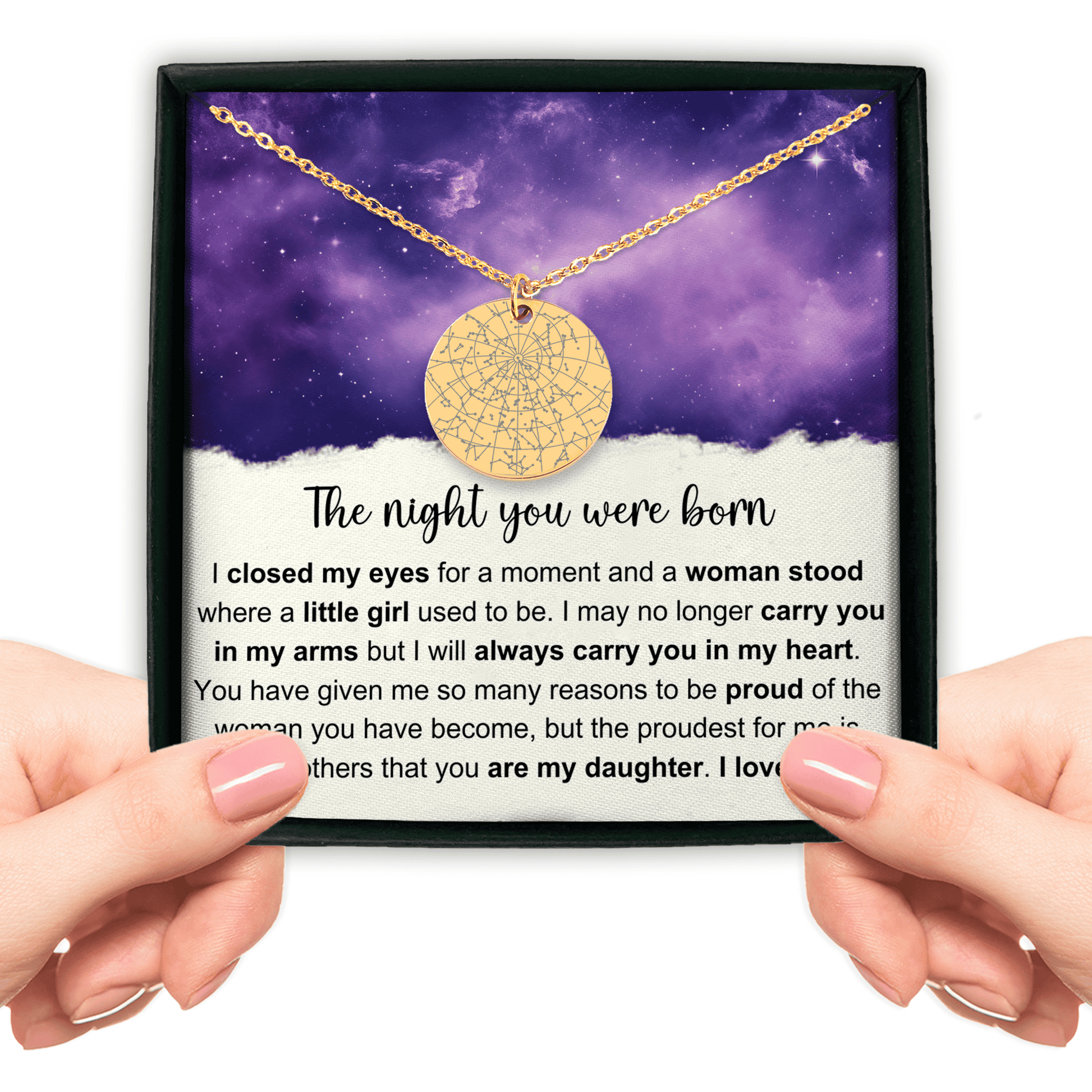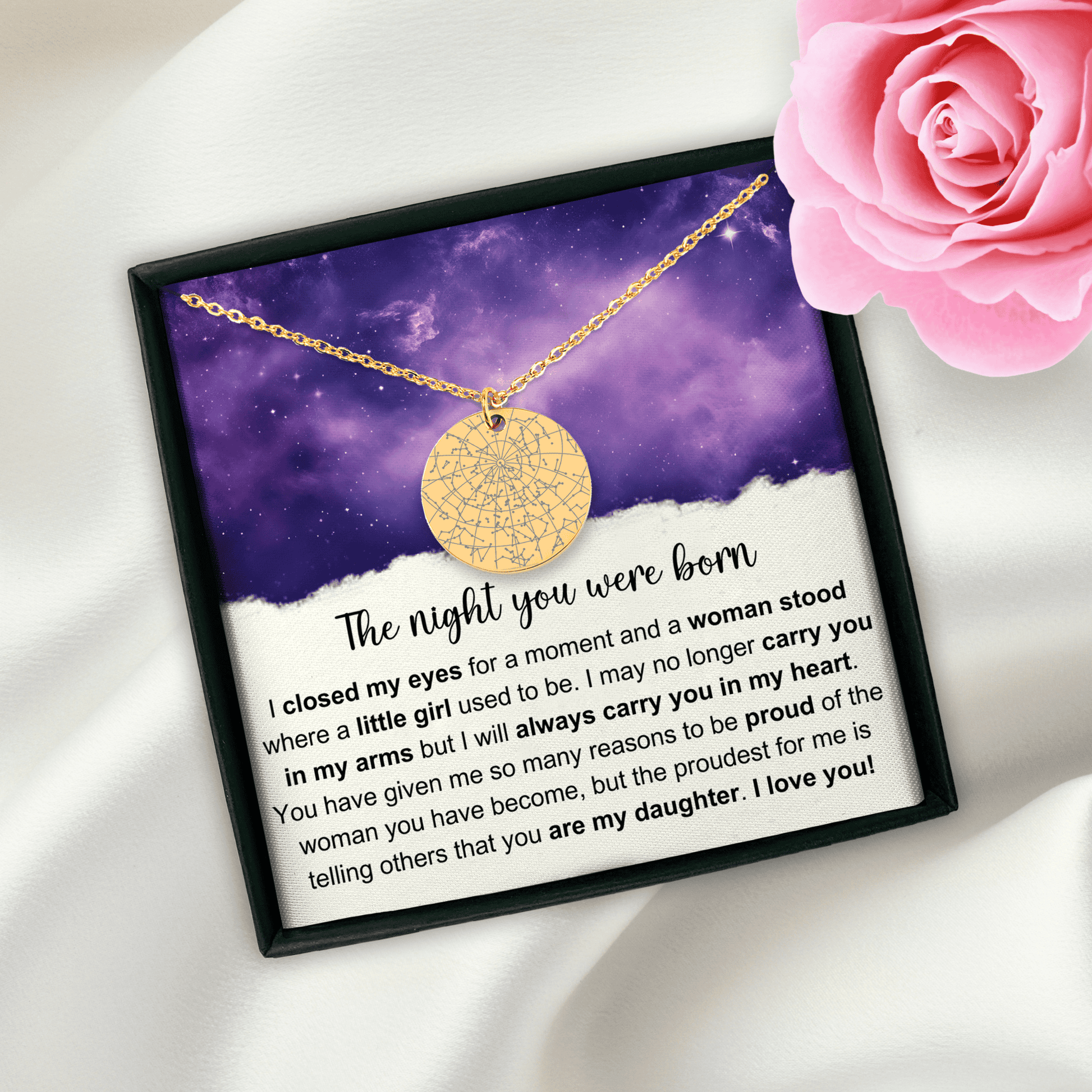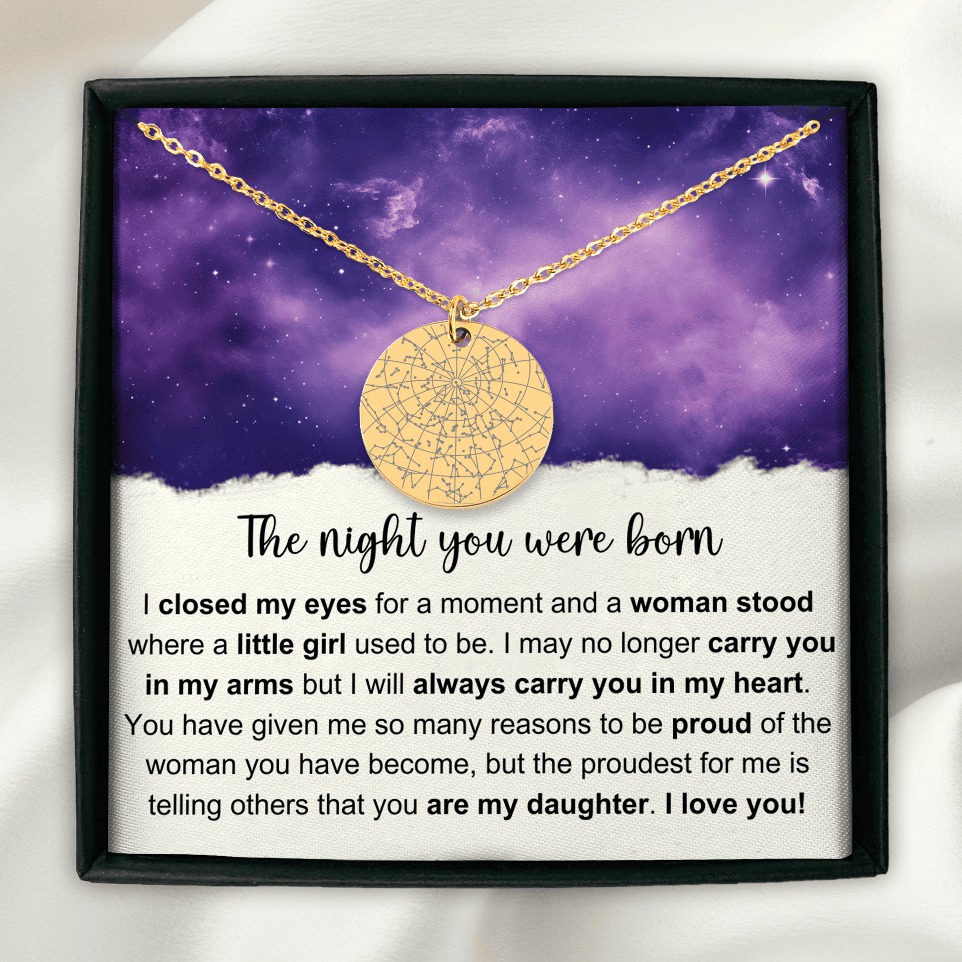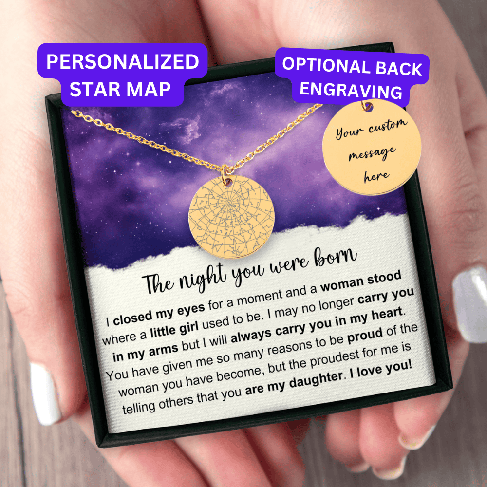 More than just a necklace... Eternalize a special moment in your life with a custom star map necklace. Easily create a truly unique birthday gift by personalizing this star map necklace for your daughter, granddaughter, niece, friend, or any loved one in your life.