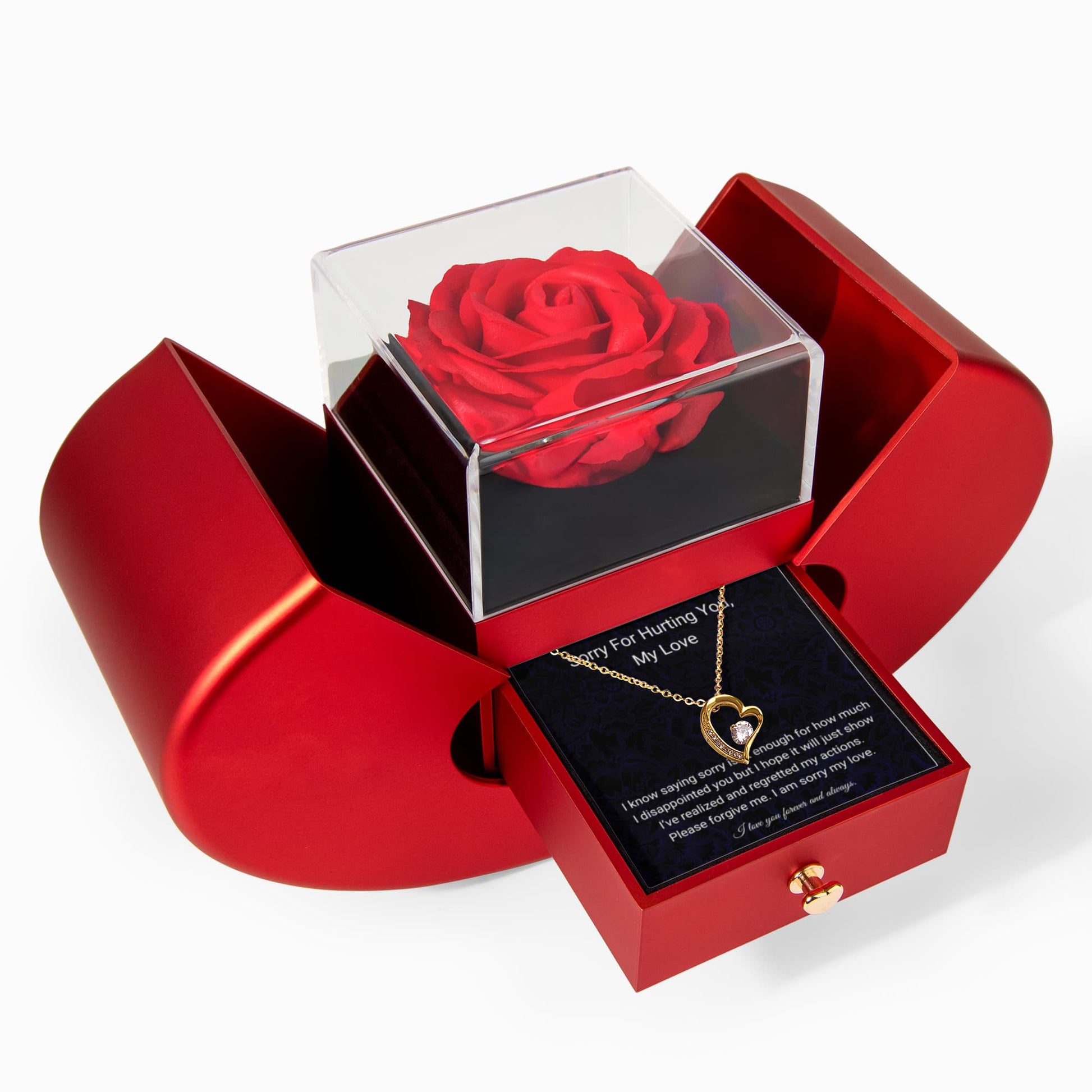 Sorry My Love | I Love You Forever & Always | Forever Love Necklace with Red Heart Rose Box