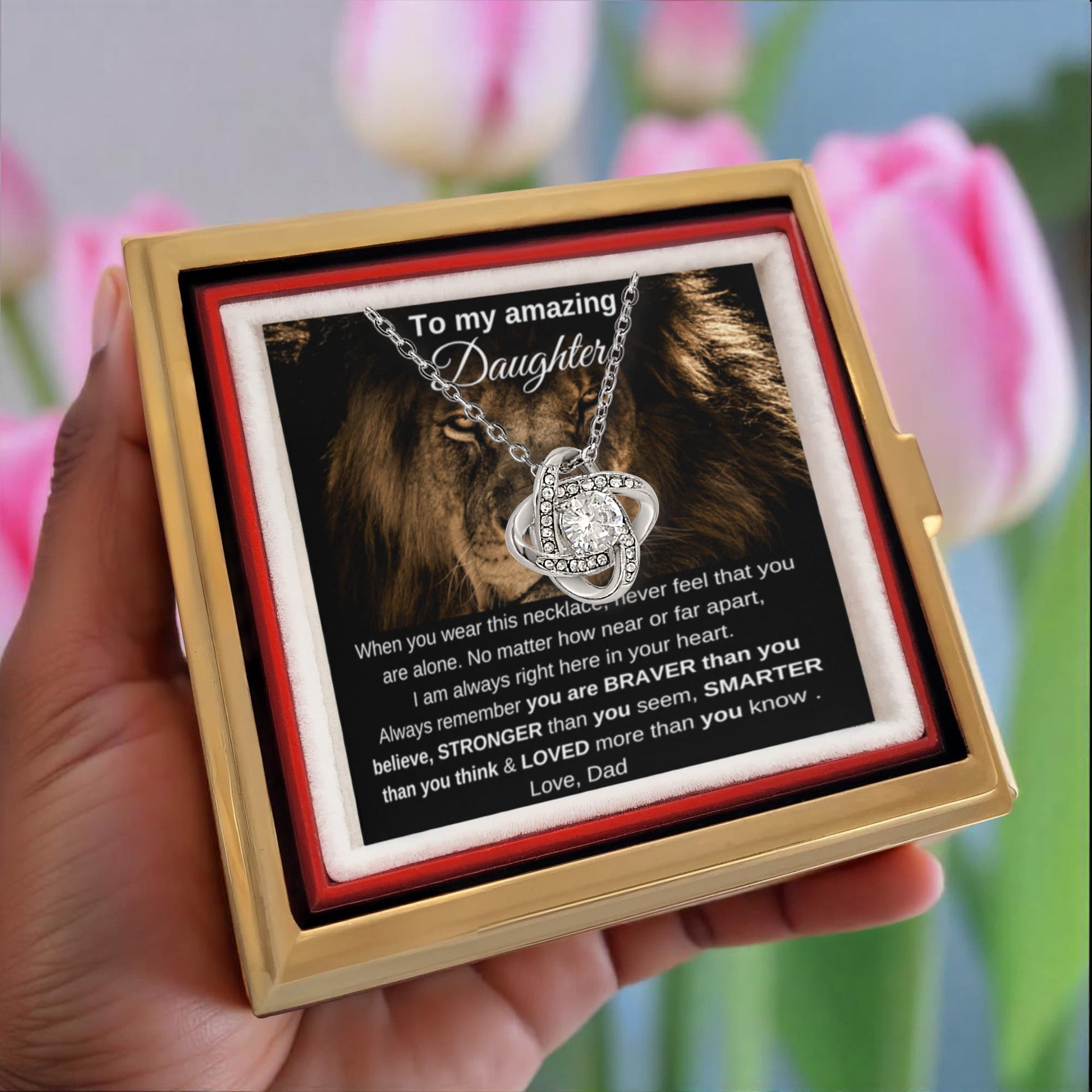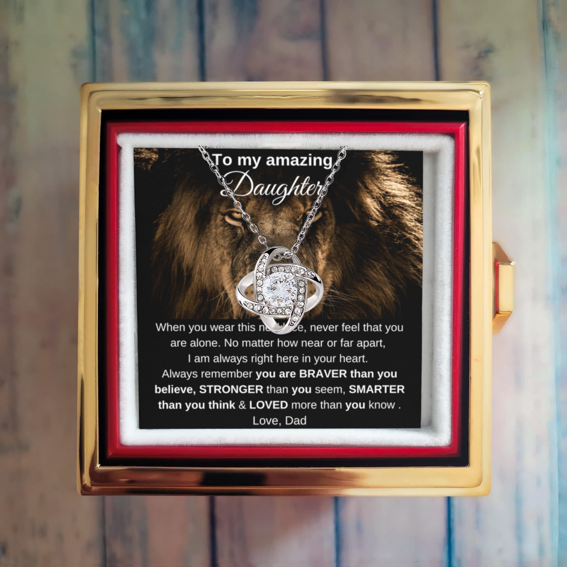 Exclusive Message Card: "To my amazing Daughter - When you wear this necklace, never feel that you are alone. No matter how near or far apart, I am always right here in your heart. Always remember you are BRAVER than you believe, STRONGER than you seem, SMARTER than you think & LOVED more than you know. Love, Dad"