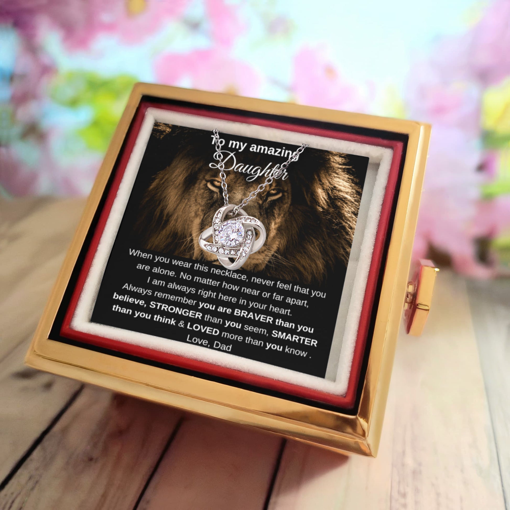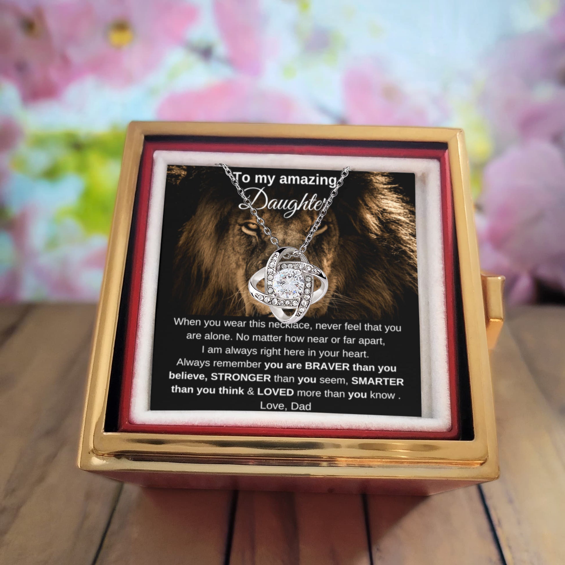To My Amazing Daughter - I Am Always Right Here In Your Heart - Love Knot with Rotating Rose Gift Box