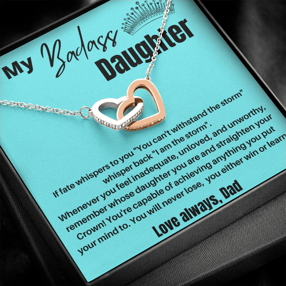 Exclusive Message Card: "To My Badass Daughter - If fate whispers to you "You can't withstand the storm" whisper back "I am the storm". Whenever you feel inadequate, unloved, and unworthy, remember whose daughter you are and straighten your Crown! You're capable of achieving anything you put your mind to. You will never lose, you either win or learn. Love always, Dad"