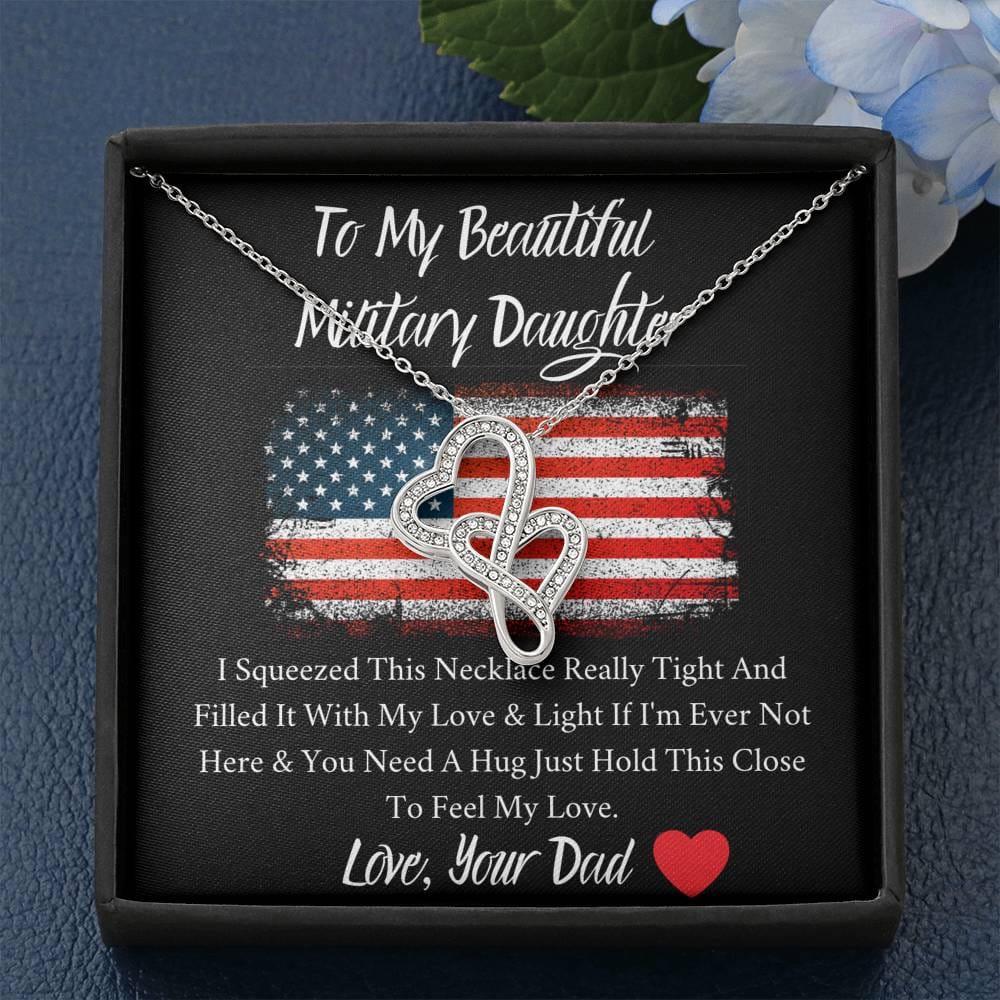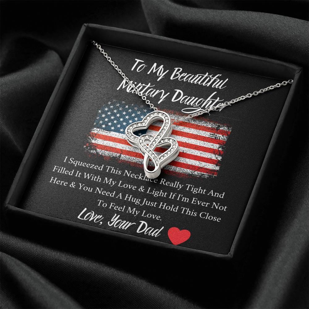 To My Beautiful Military Daughter - Feel My Love - Double Hearts Necklace