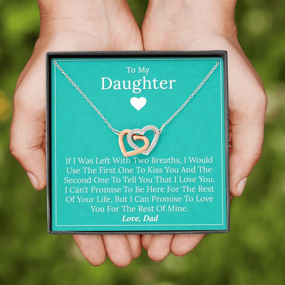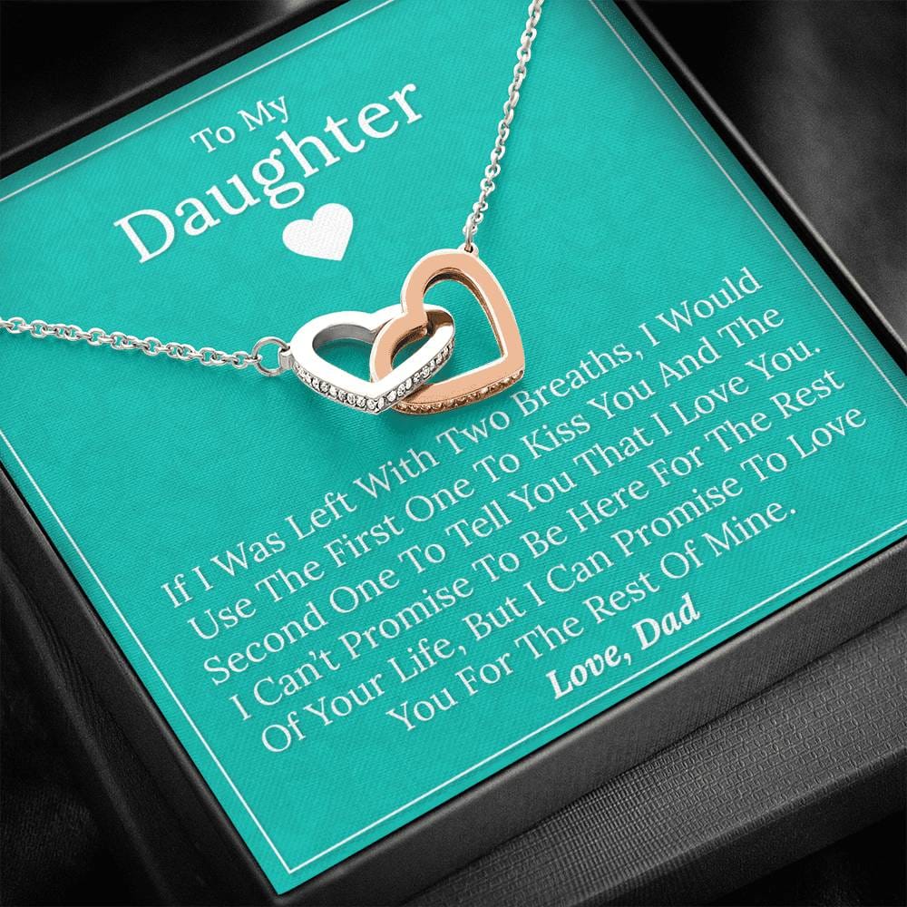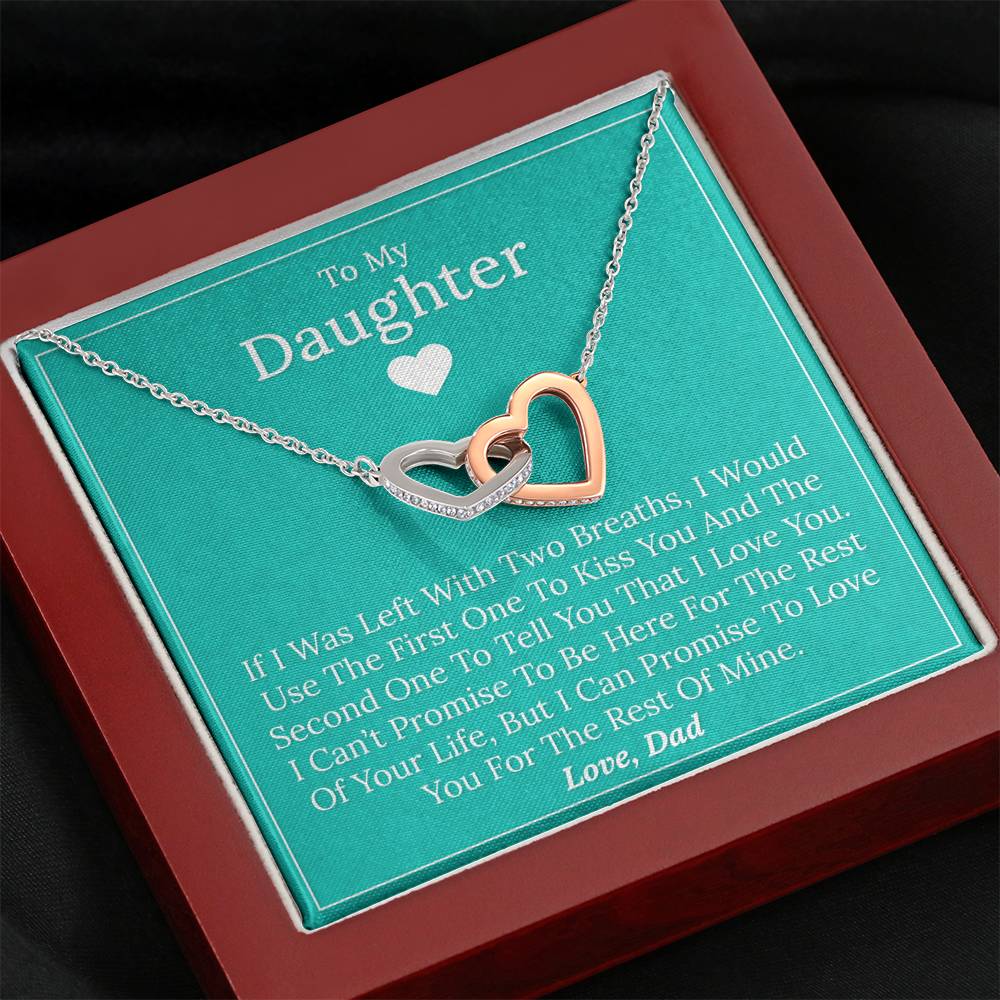 Two hearts embellished with Cubic Zirconia stones, interlocked together as a symbol of never-ending love. Made with high quality polished surgical steel. Cable chain measures 18 inches with a 4 inch extension, and fastens with a lobster clasp.