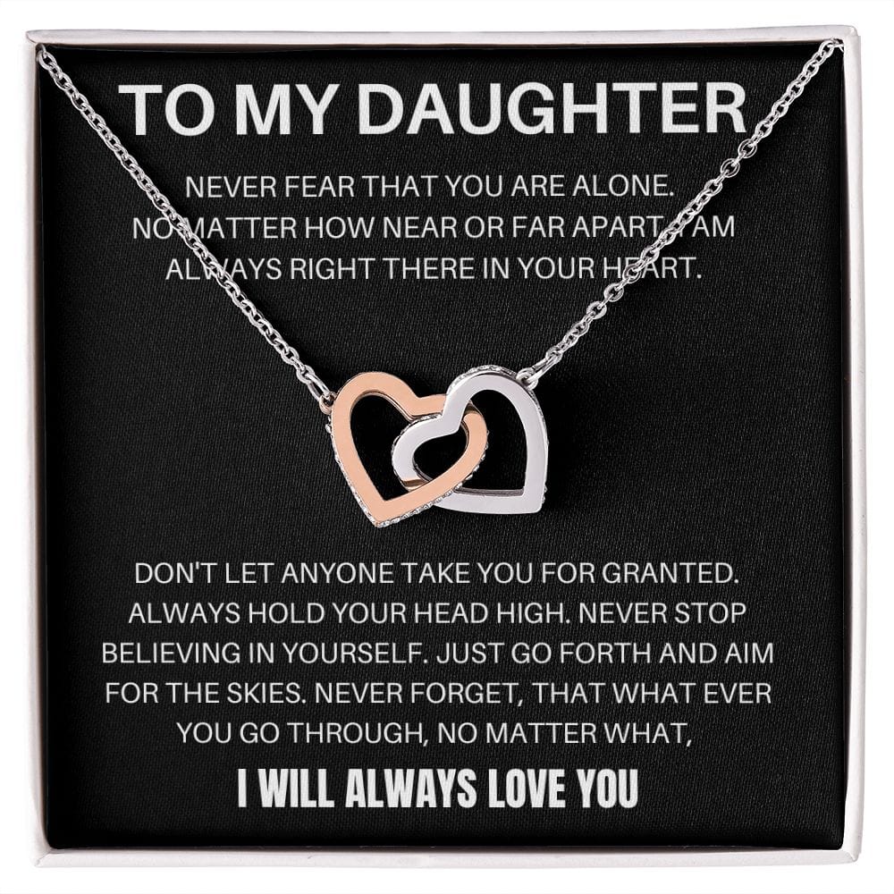 To My Daughter - Never Fear - Interlocking Hearts Necklace