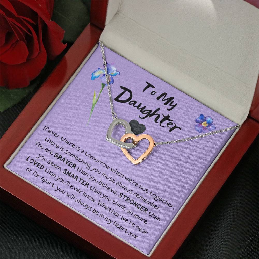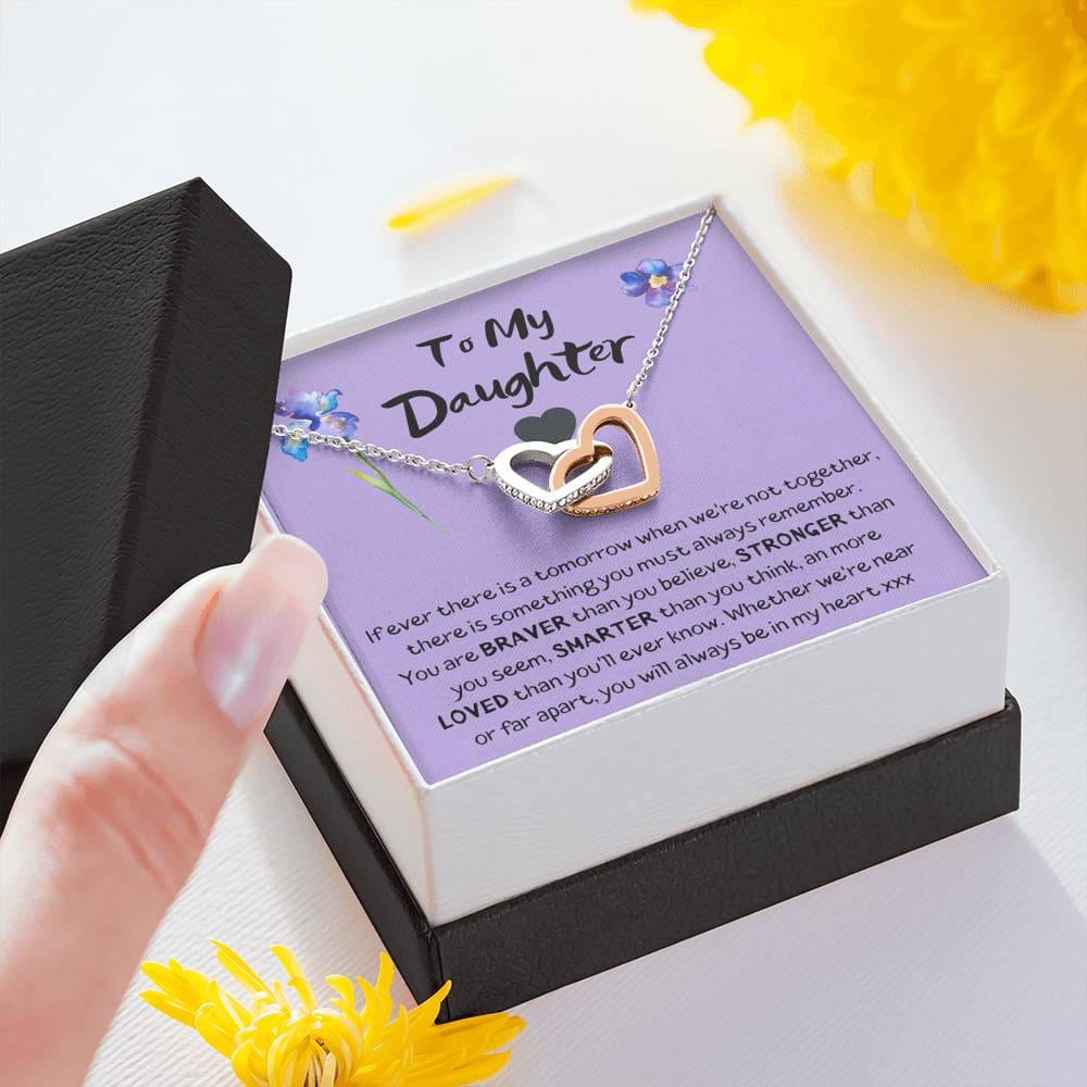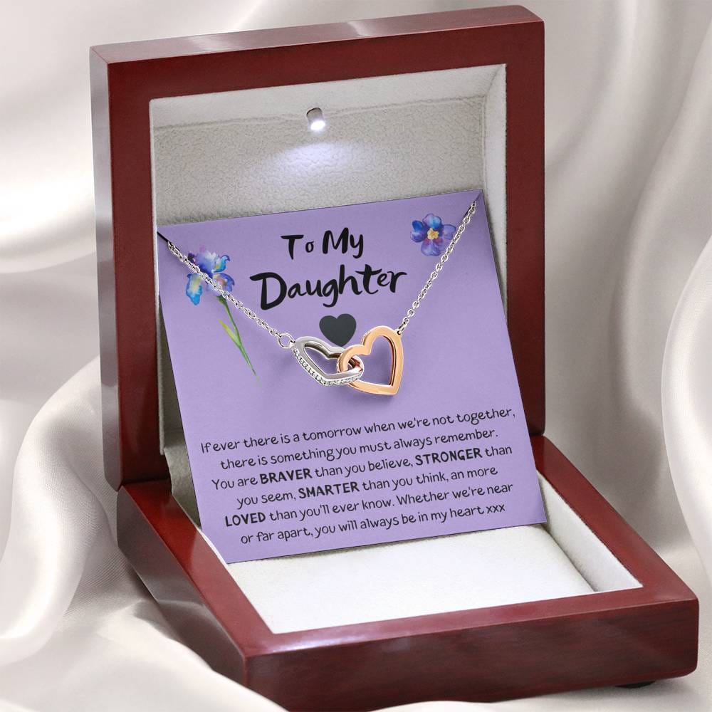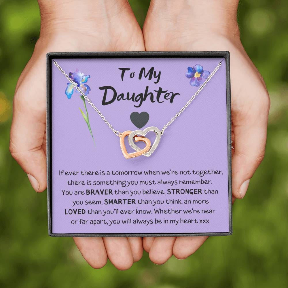 Two hearts embellished with Cubic Zirconia stones, interlocked together as a symbol of never-ending love. Made with high quality polished surgical steel. Cable chain measures 18 inches with a 4 inch extension, and fastens with a lobster clasp.