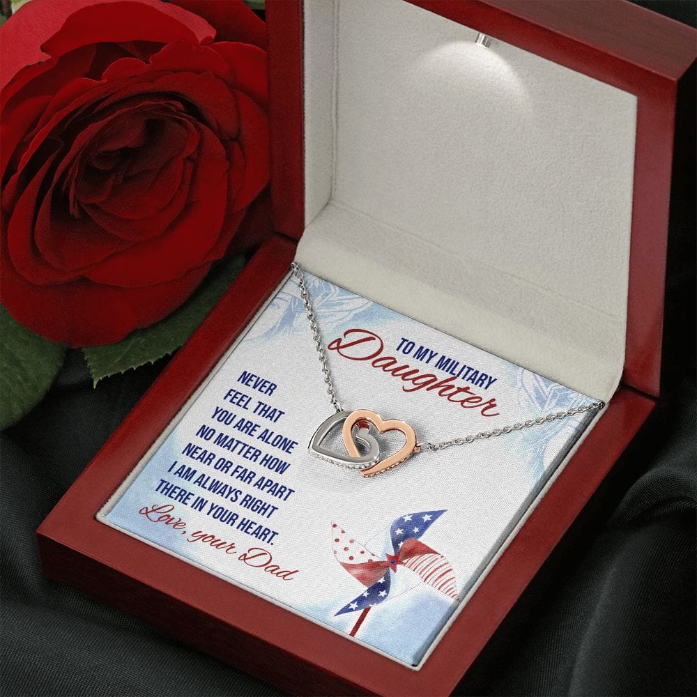 To My Military Daughter - Never Feel - Interlocking Hearts Necklace