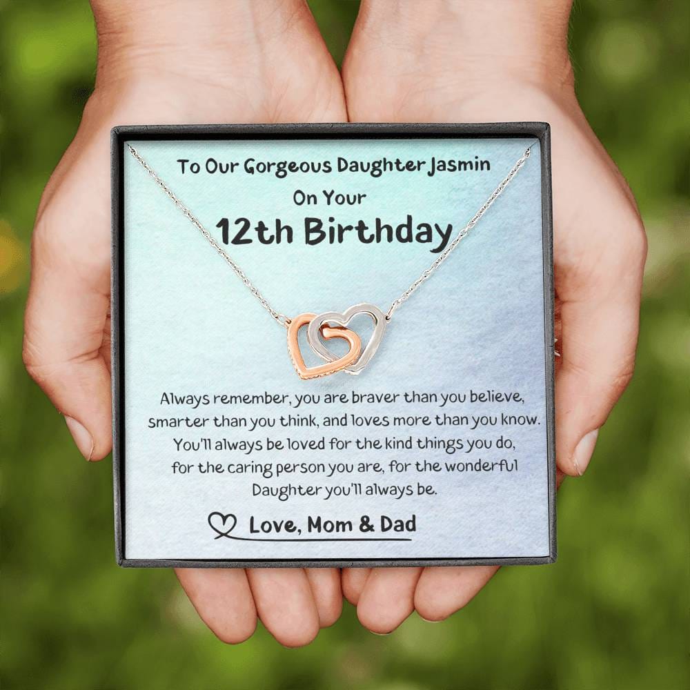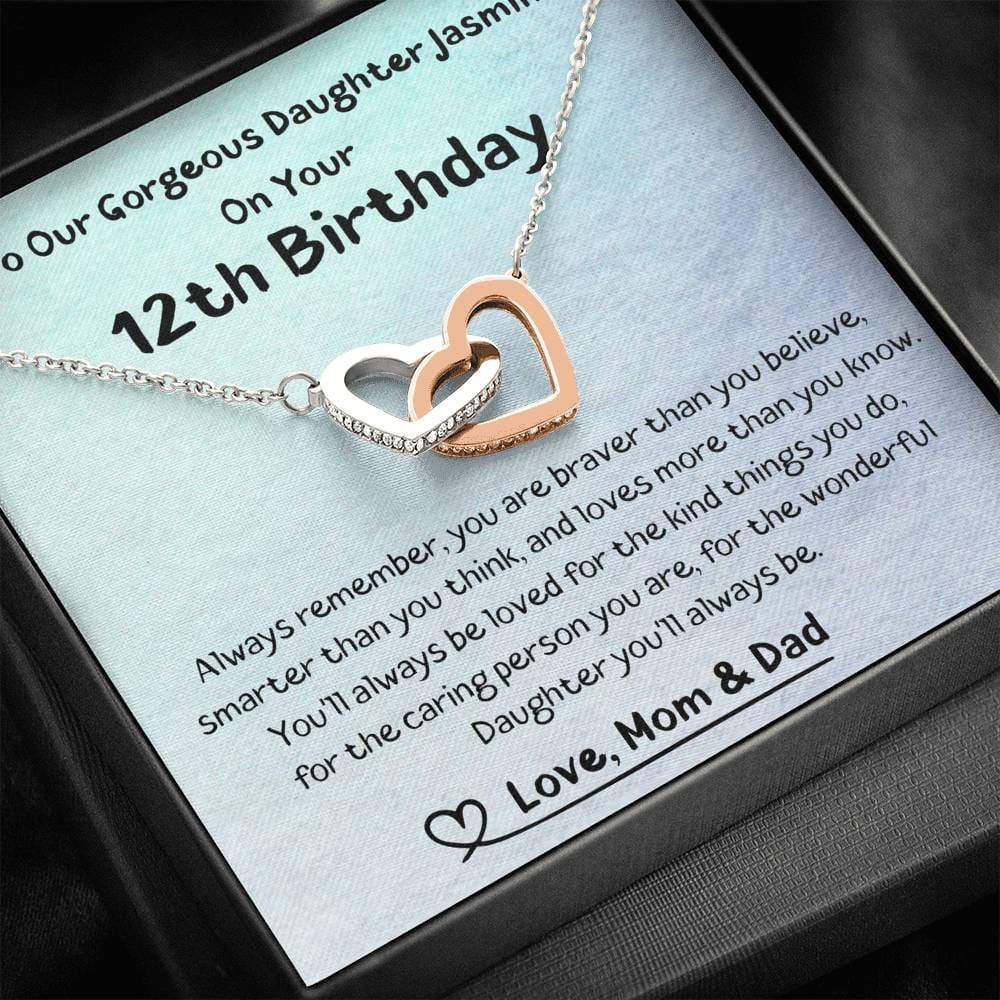 Exclusive Message Card: "To Our Gorgeous Daughter Jasmin On Your 12th Birthday - Always remember, you are braver than you believe, Smarter than you think, and loves more than you know. You'll always be loved for the kind things you do, for the caring person you are, for the wonderful Daughter you'll always be. Love, Mom & Dad"