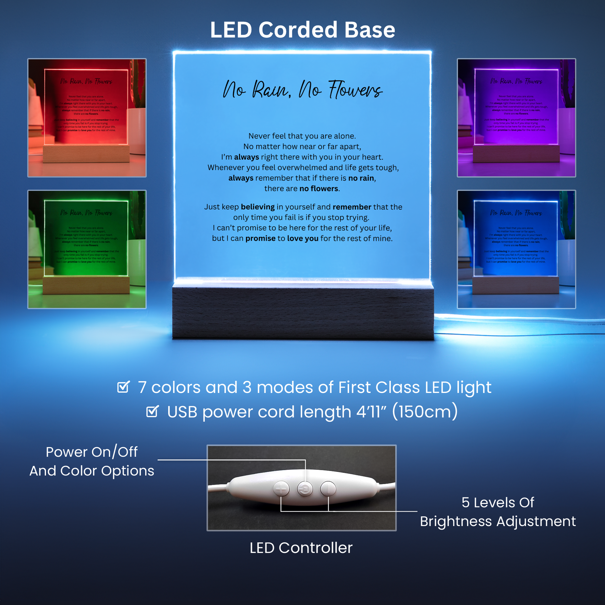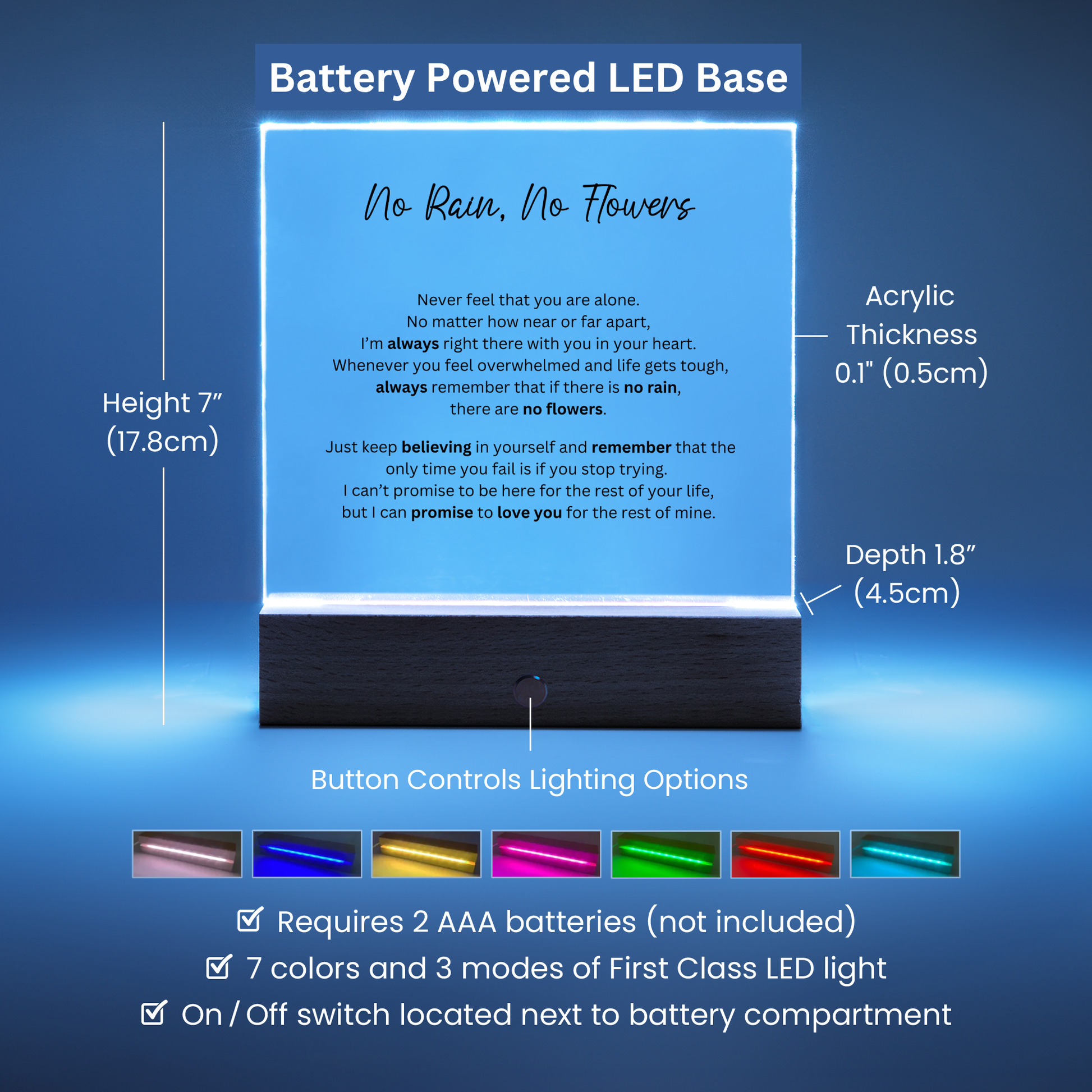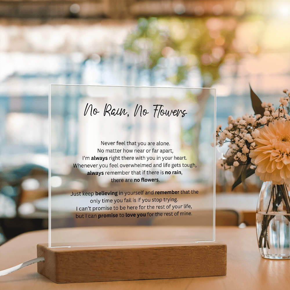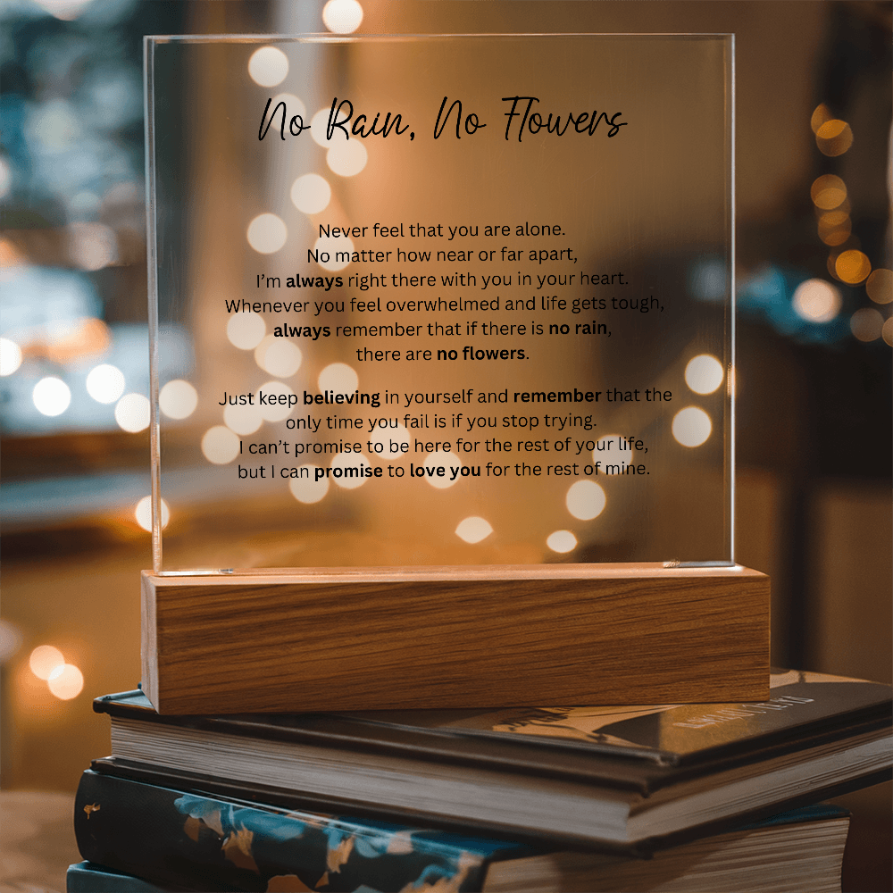 Showcase your heartfelt message on our Square Acrylic Plaque.  Crystal-clear acrylic highlights your sentiment, while the sleek wooden base adds sophistication. Make it even more captivating with the LED wooden base upgrade. Ideal for your daughter or a cherished loved one, this plaque beautifully conveys your love and appreciation.