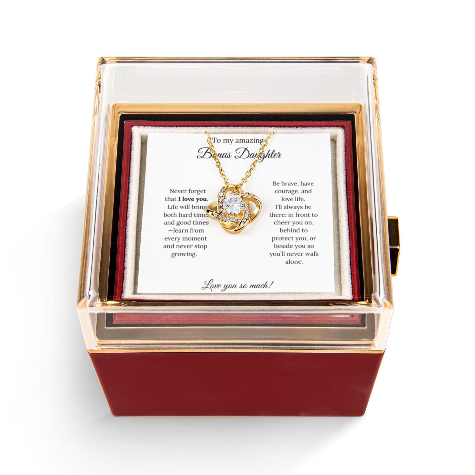 To My Amazing Bonus Daughter | Love You So Much | Love Knot with Rotating Rose Gift Box