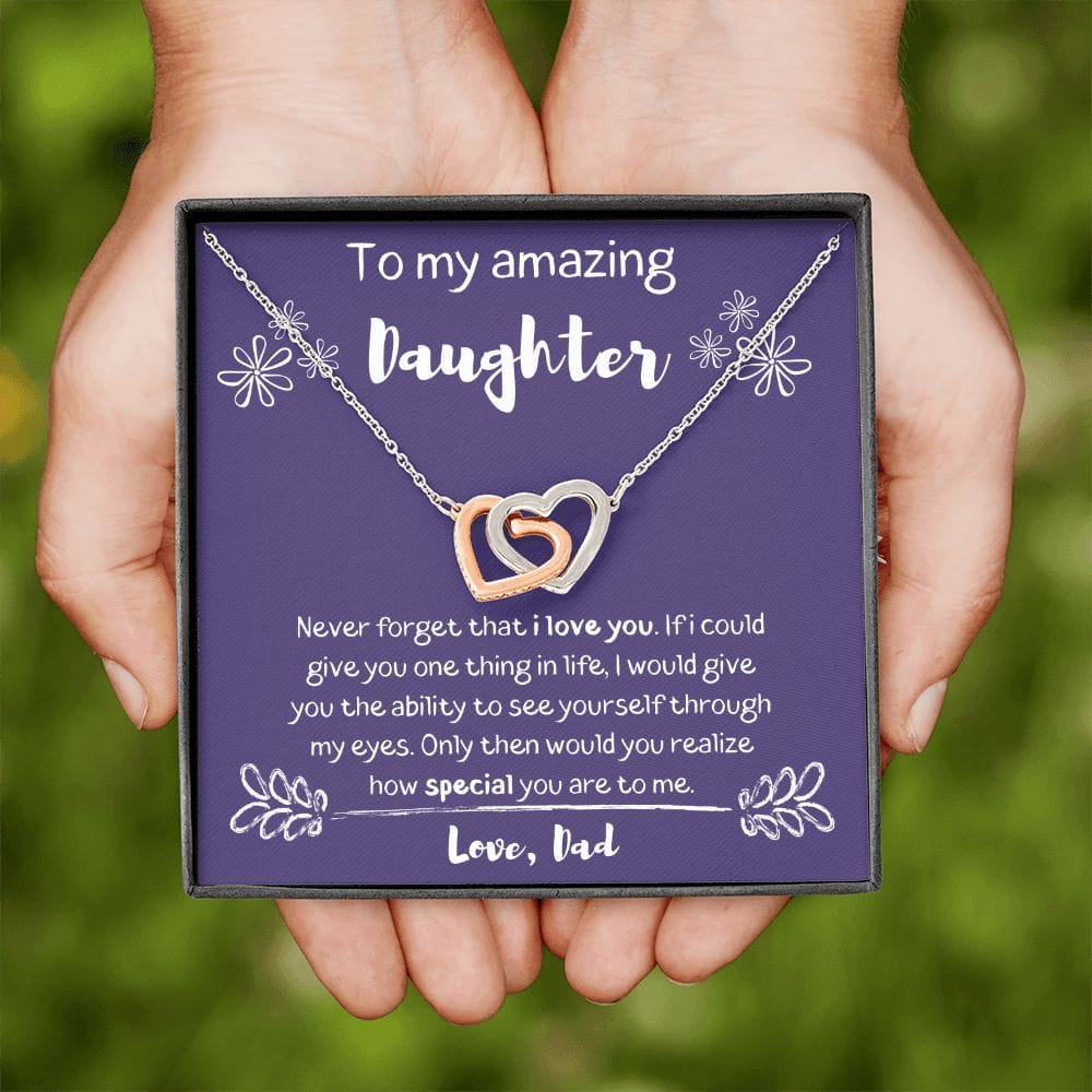 To My Amazing Daughter - Never Forget - Interlocking Hearts Necklace