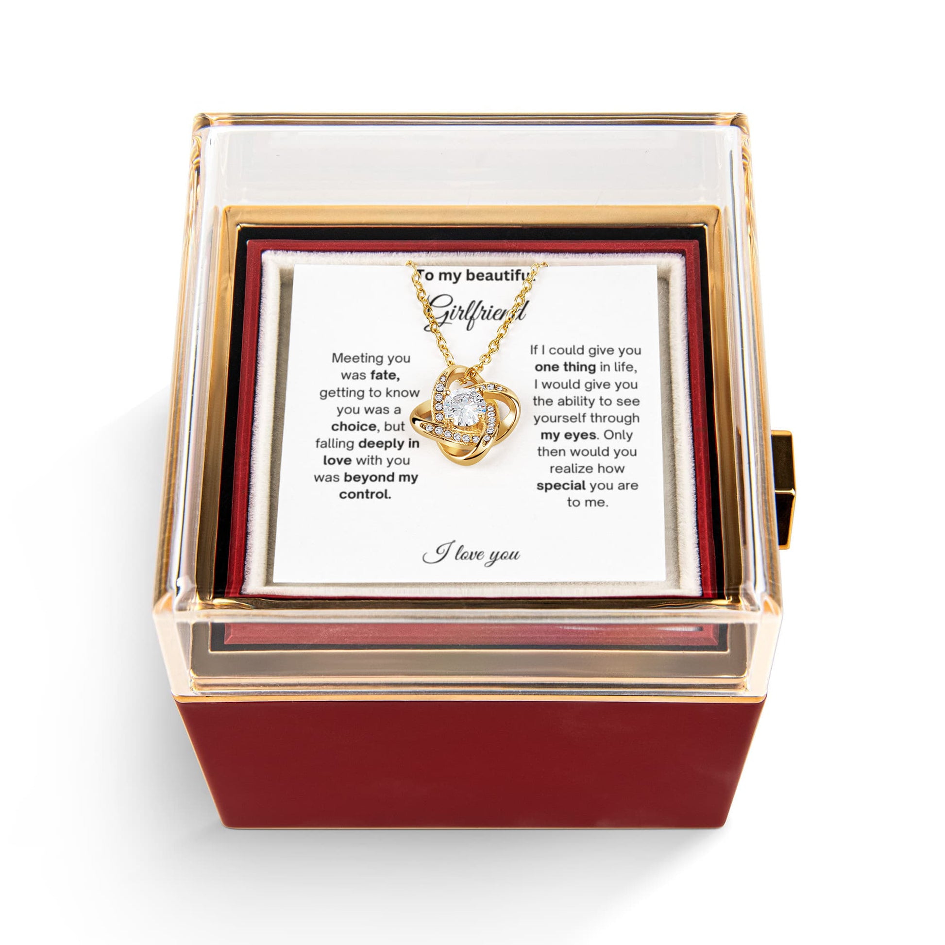 To My Beautiful Girlfriend - I Love You - Love Knot with Rotating Rose Gift Box