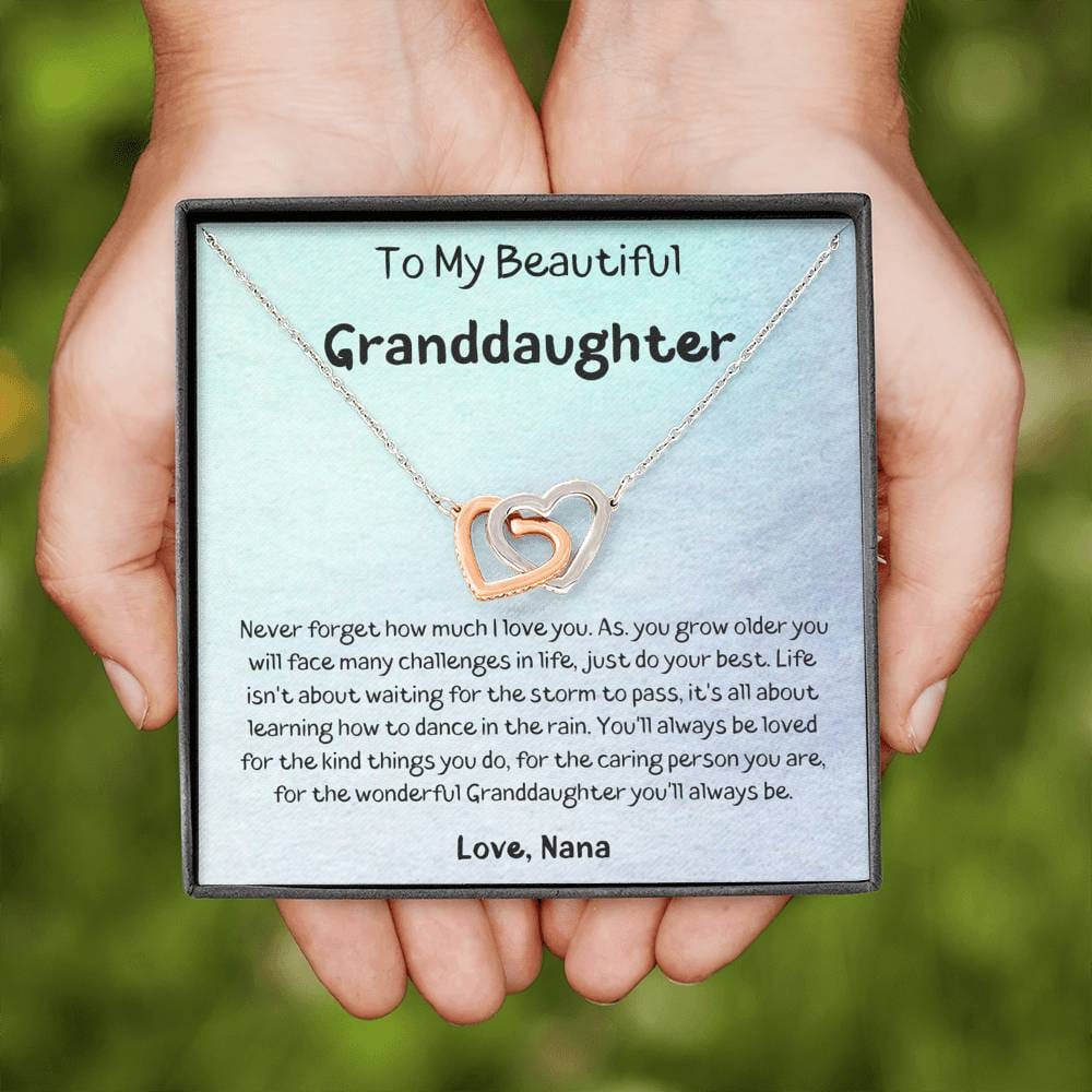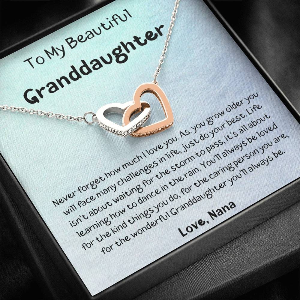 To My Beautiful Granddaughter - Never Forget - Love Nana - Interlocking Hearts Necklace