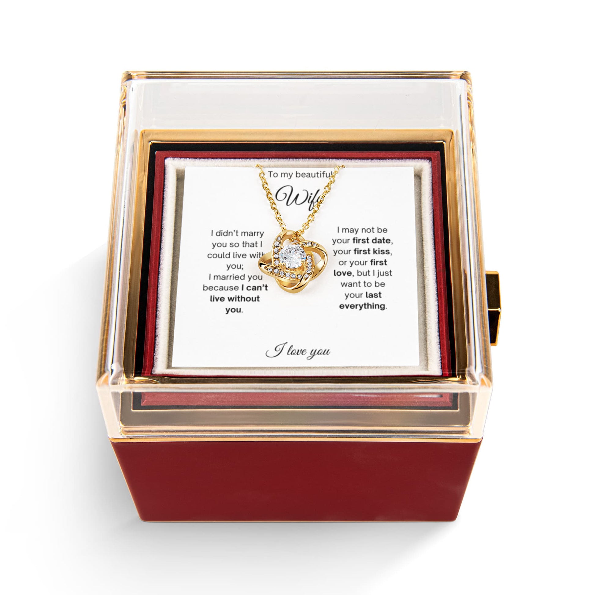 To My Beautiful Wife - I Love You - Love Knot with Rotating Rose Gift Box
