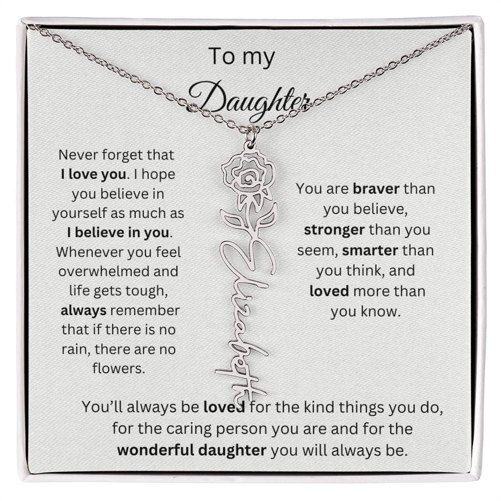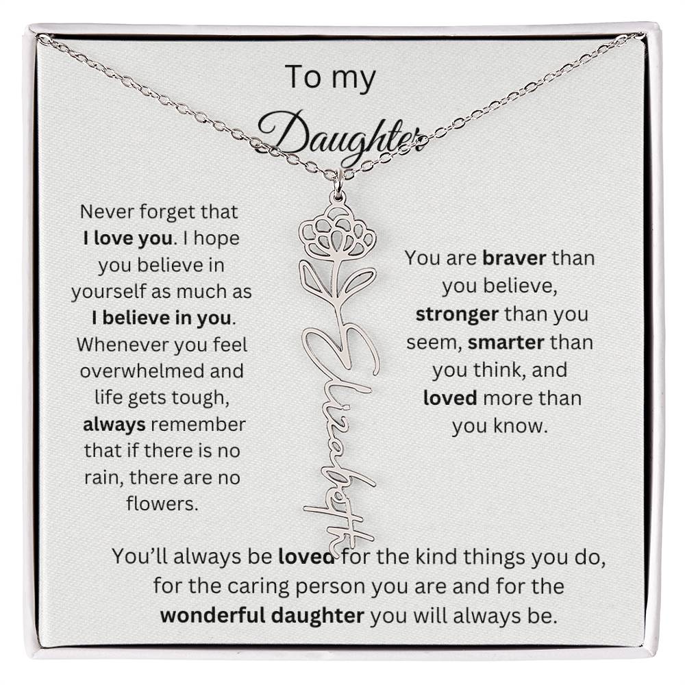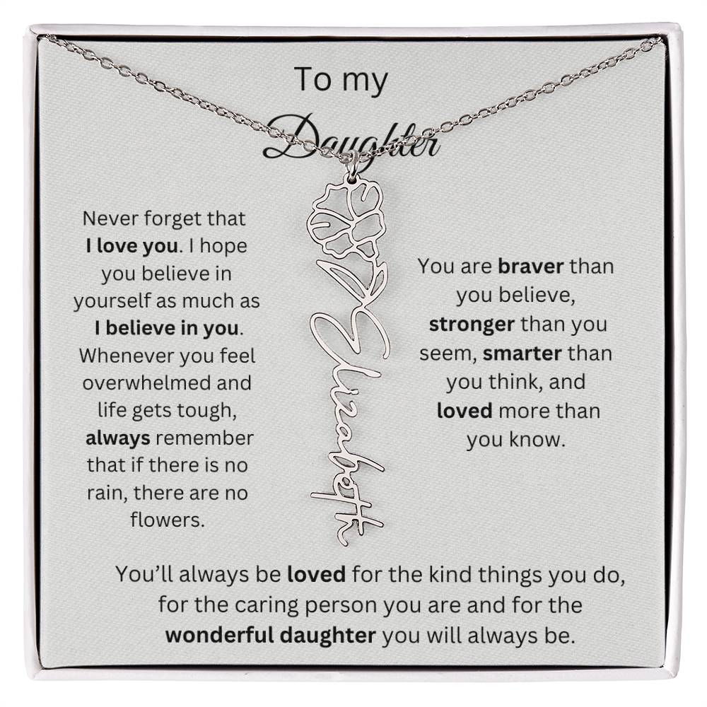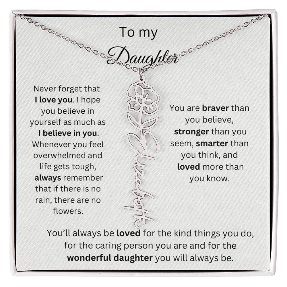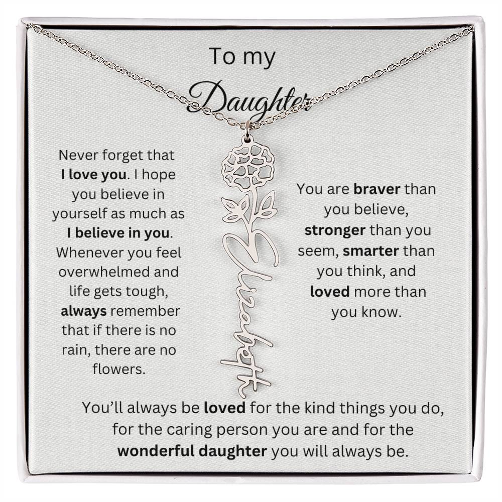 To My Daughter - Never Forget - Birth Flower Name Necklace